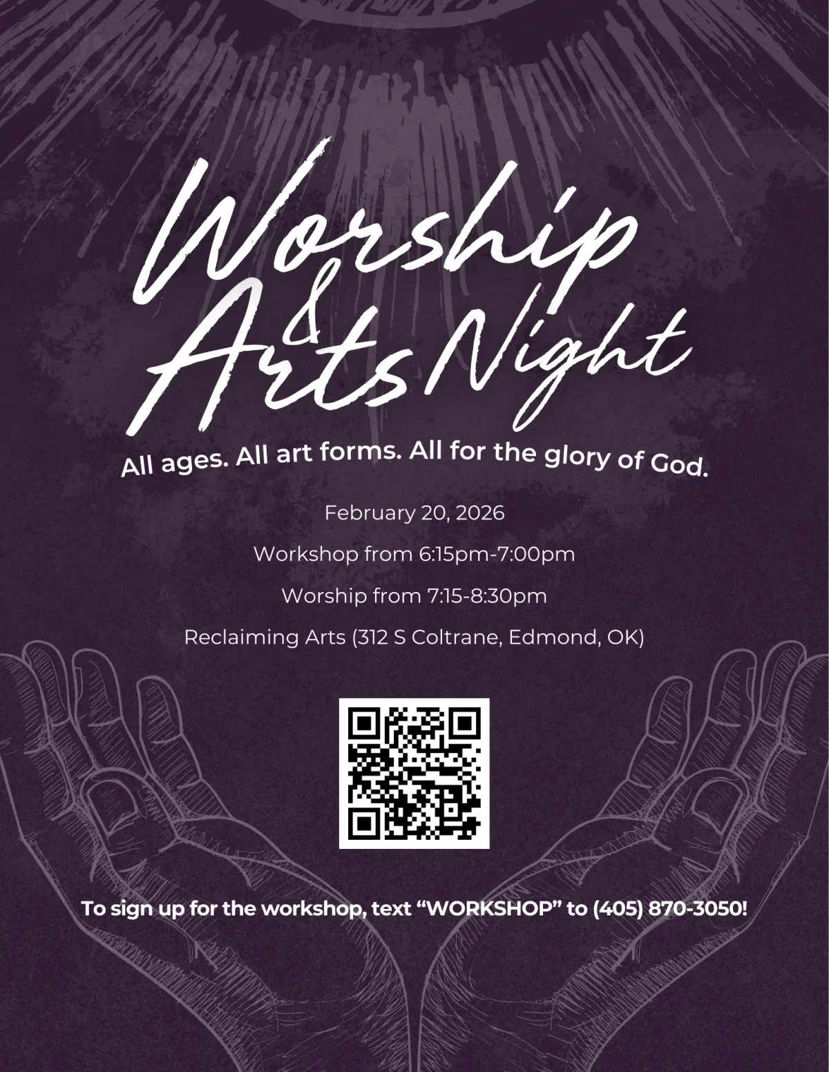 To sign up for the free workshop, text "WORKSHOP" to (405) 870-3050. No sign up is required for the worship portion of the evening.